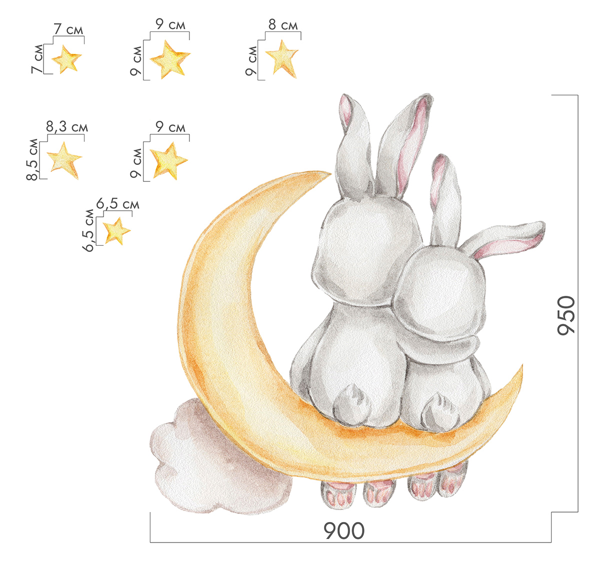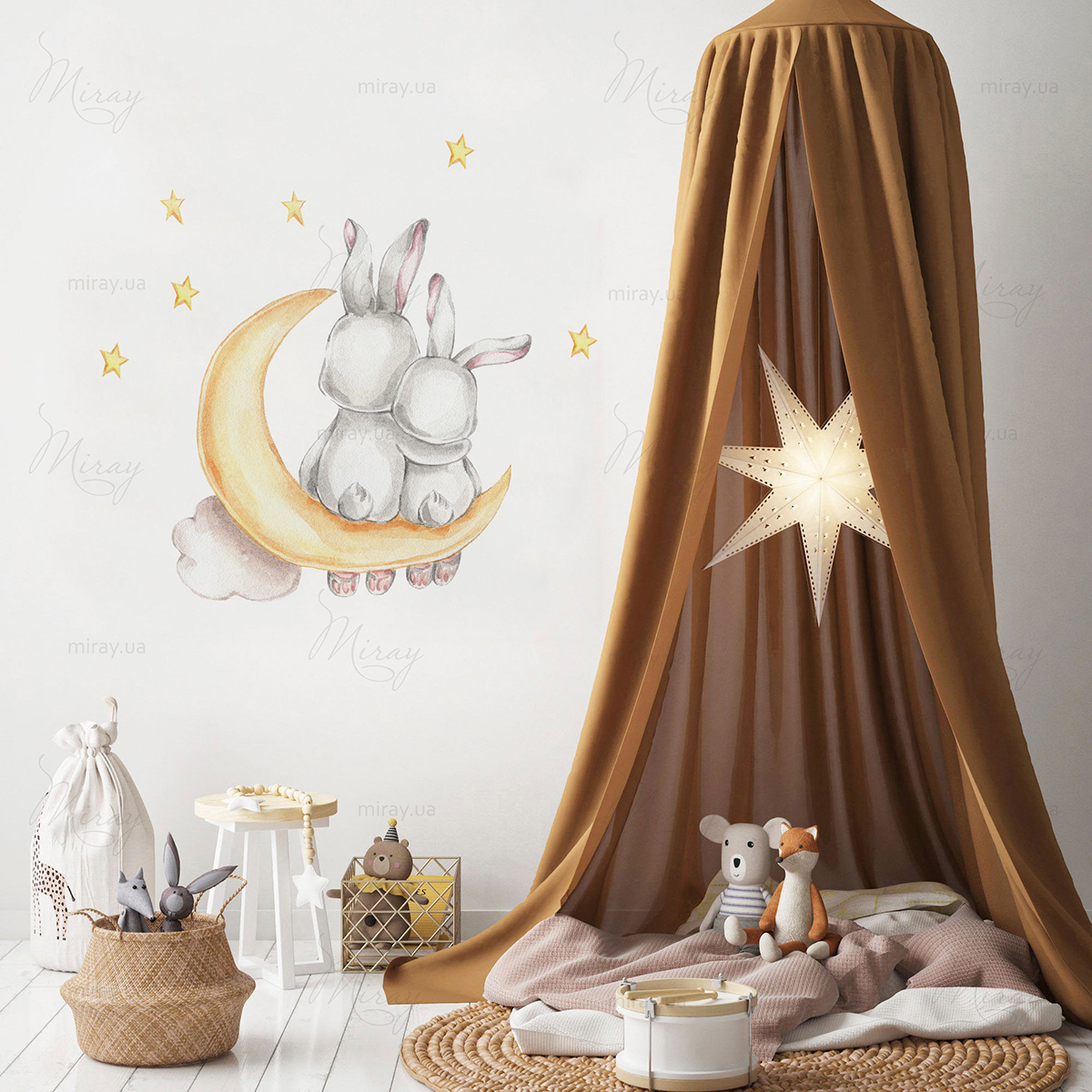 Bunny,Couple,Sitting,On,The,Moon;,Watercolor,Hand,Drawn,Illustration;