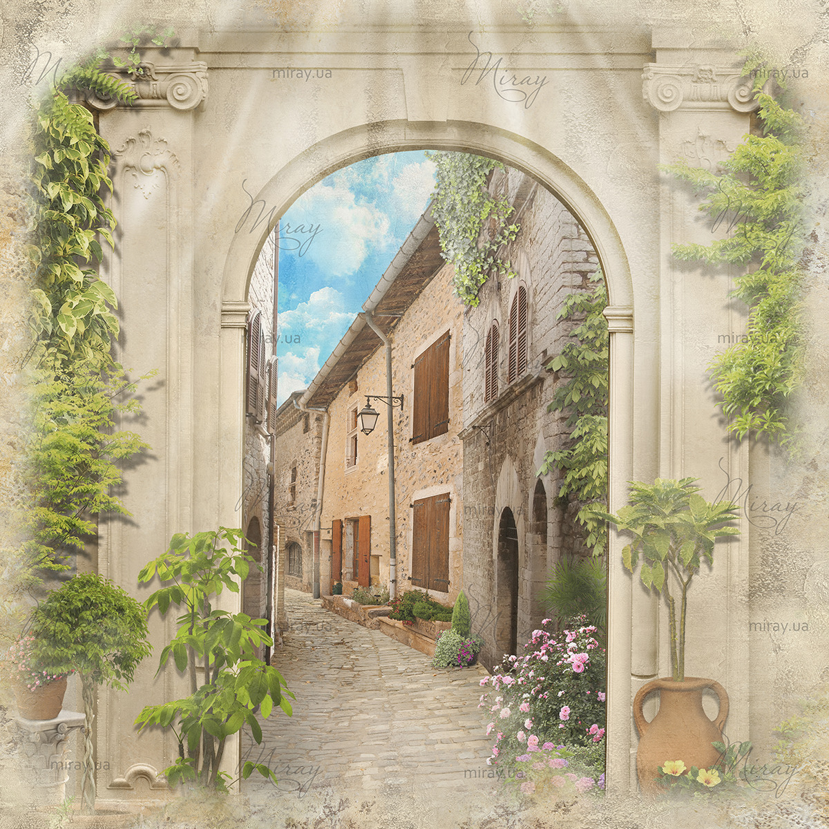 Фреска із старовинною міської аркою