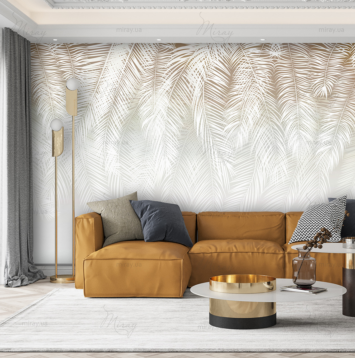 Листя пір’я охра з сірим