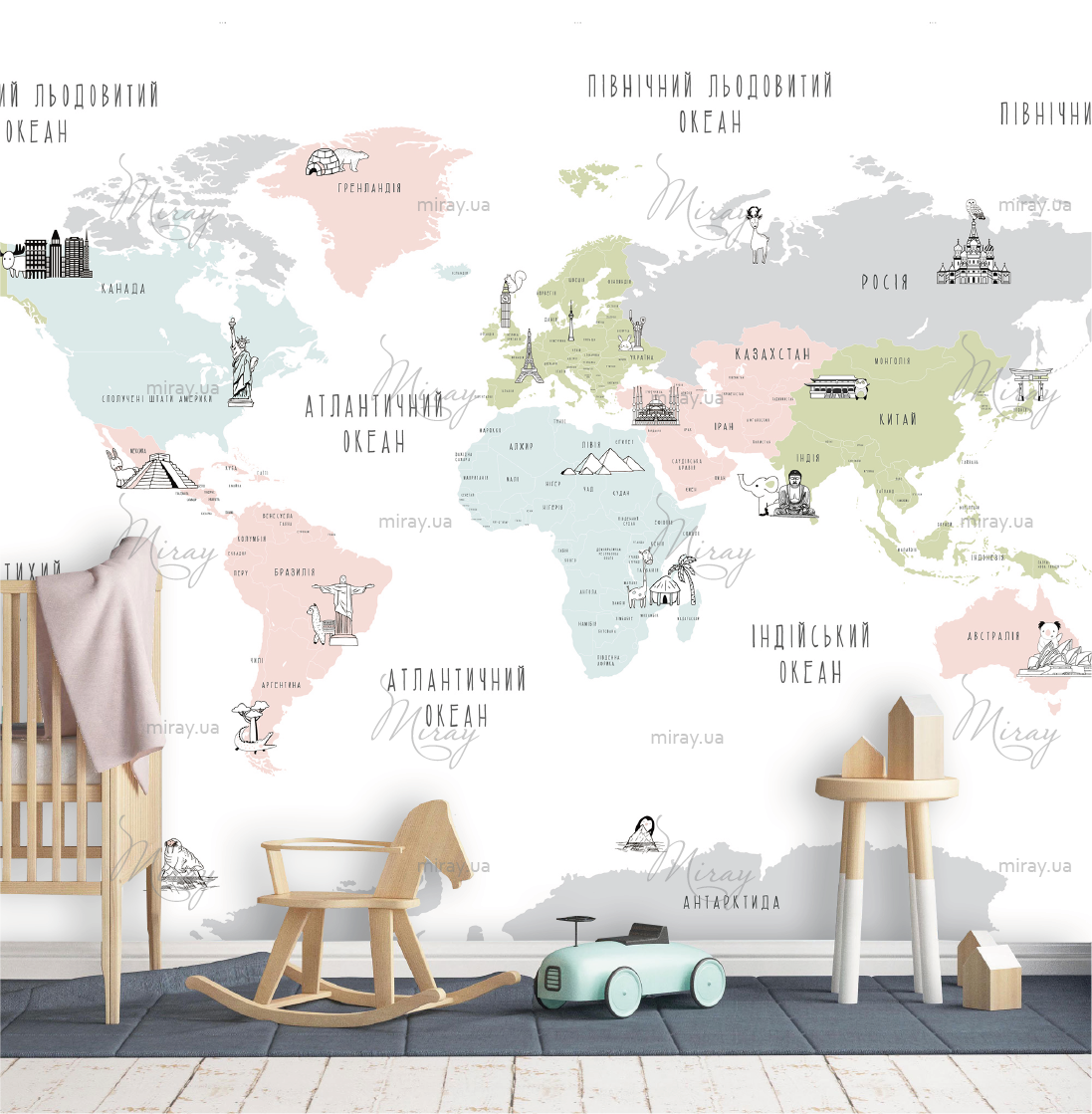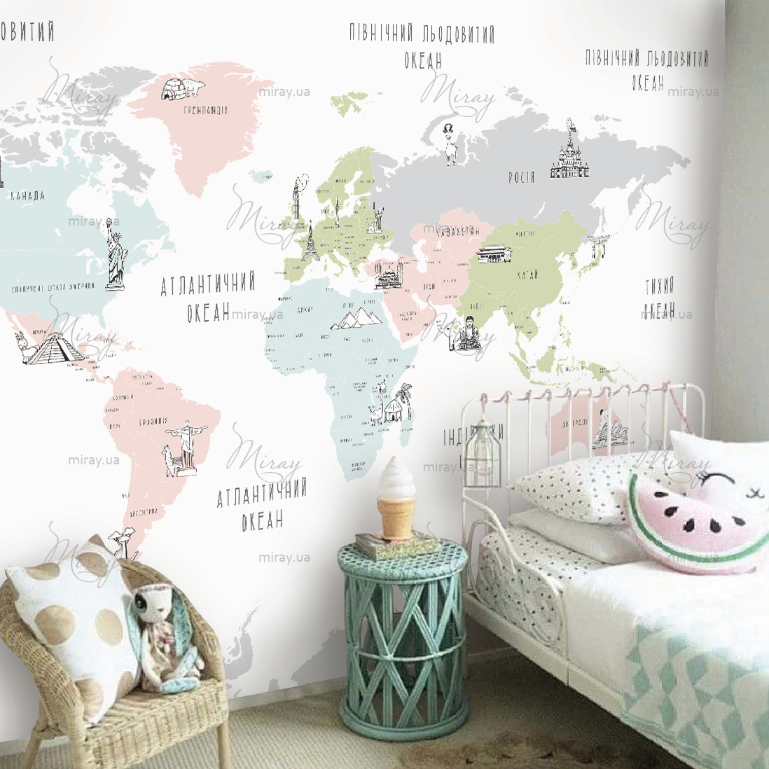 Це не просто декор, це частина пізнання світу, розвитку дитини, його знань про нашу планету. Неймовірно красива і стильна карта стане головною прикрасою дитячої кімнати