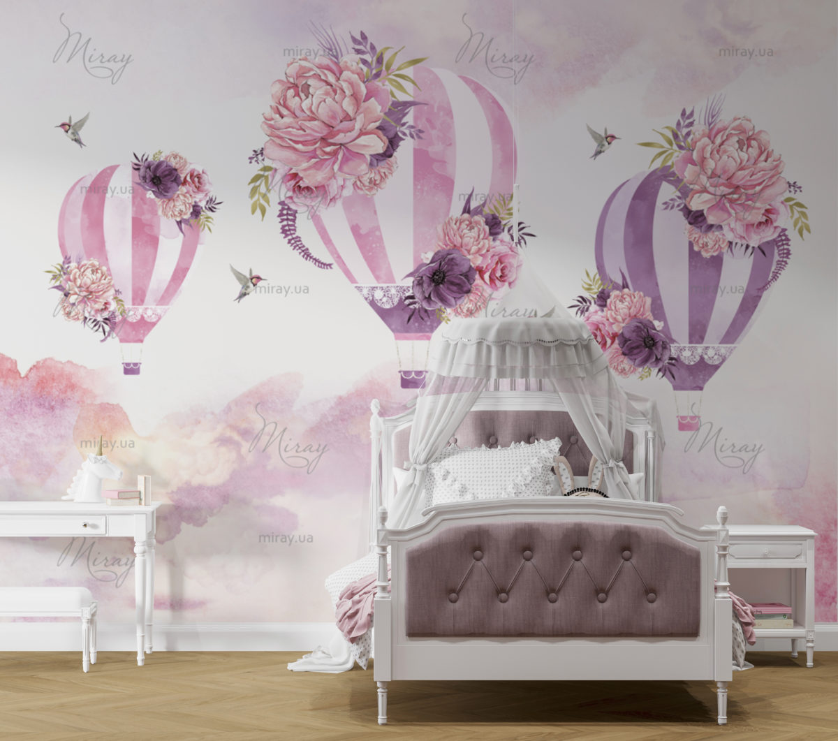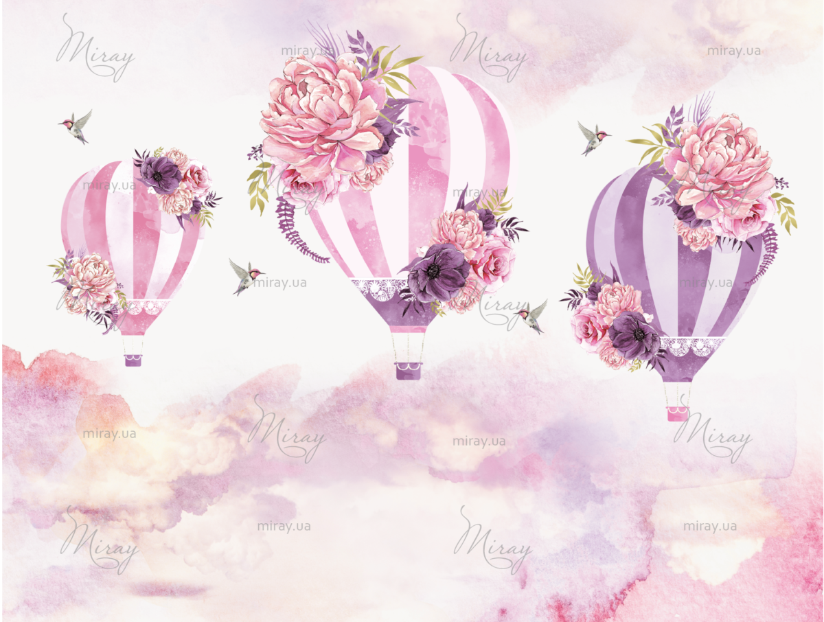 Рожеві та бузкові повітряні кулі з колібрі