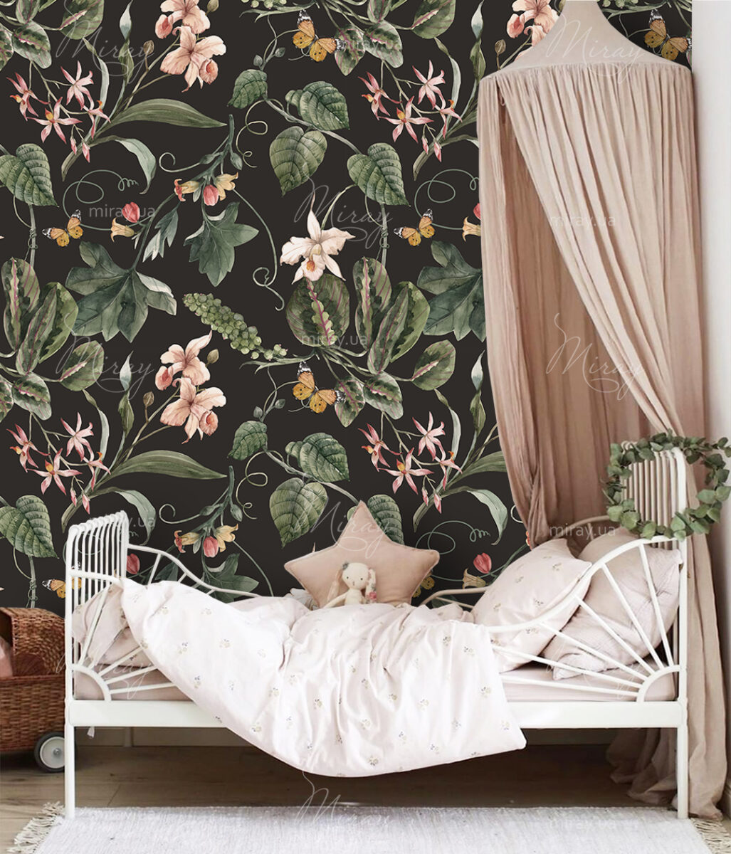 Тропічні квіти на темному тлі