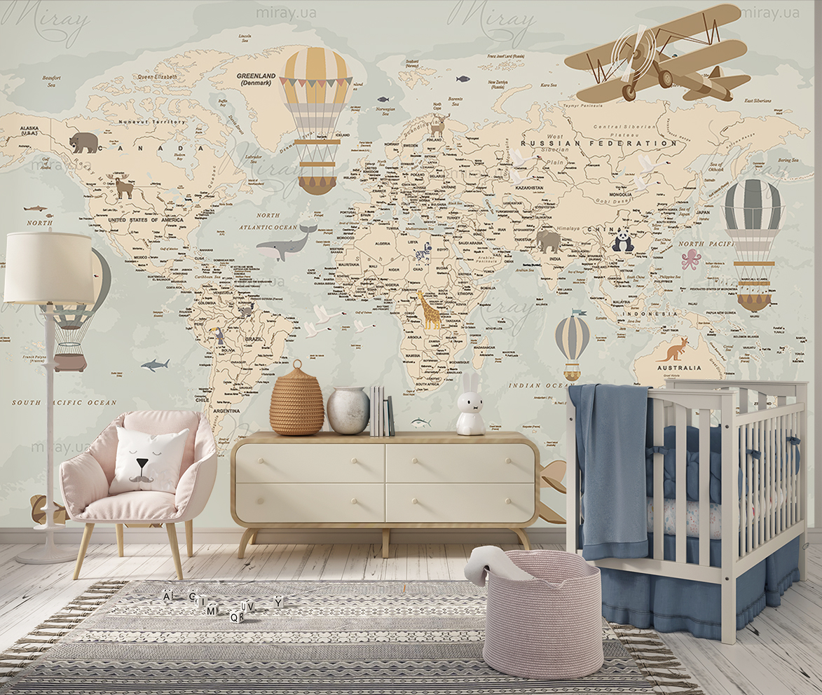 Це не просто декор, це частина пізнання світу, розвитку дитини, його знань про нашу планету. Неймовірно красива і стильна карта стане головною прикрасою дитячої кімнати