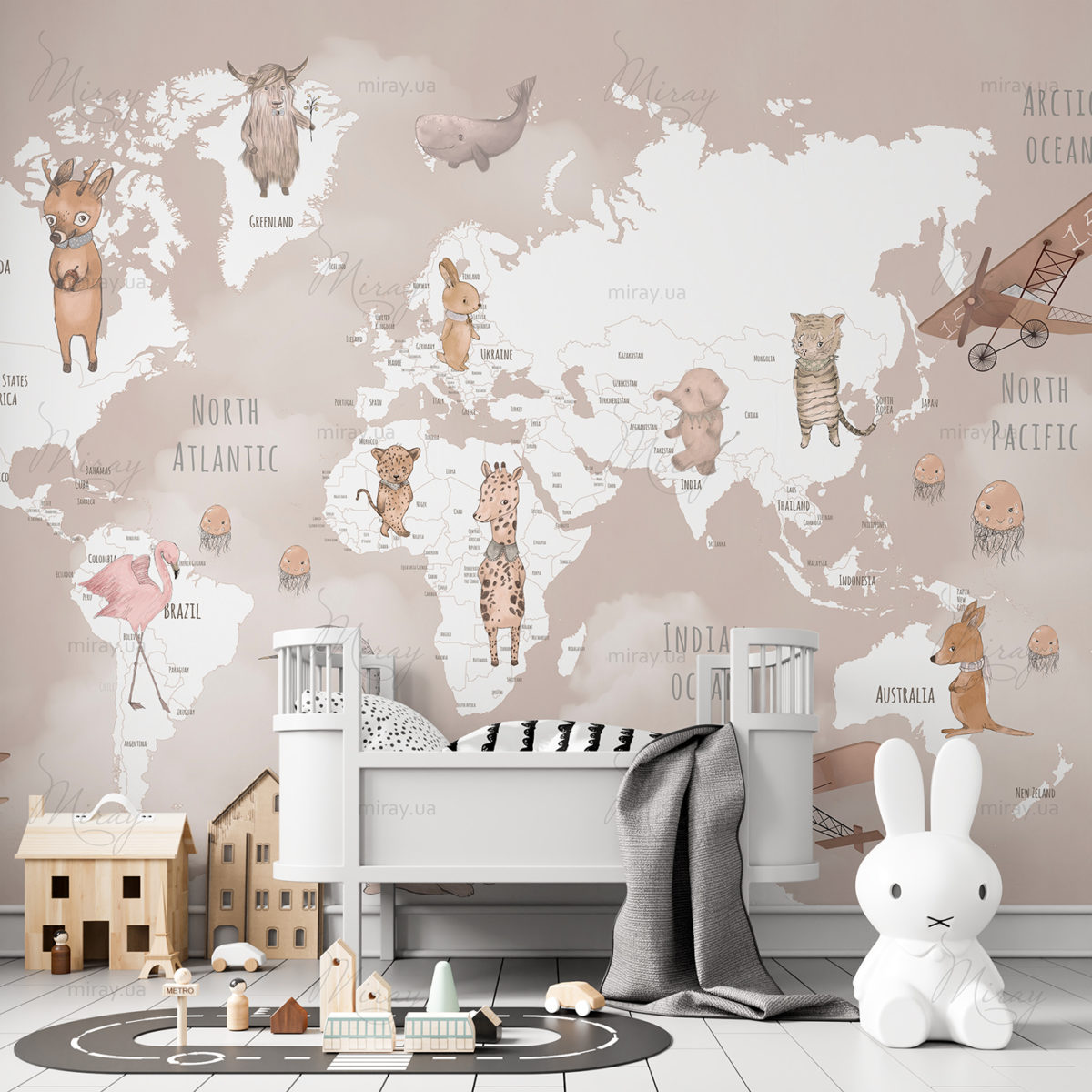 Мапа світу з милими звірятами