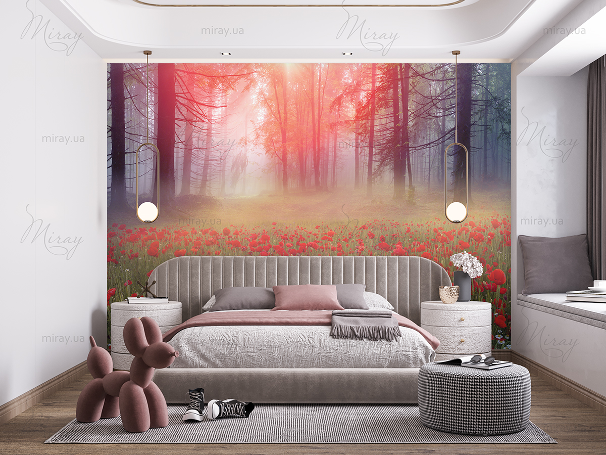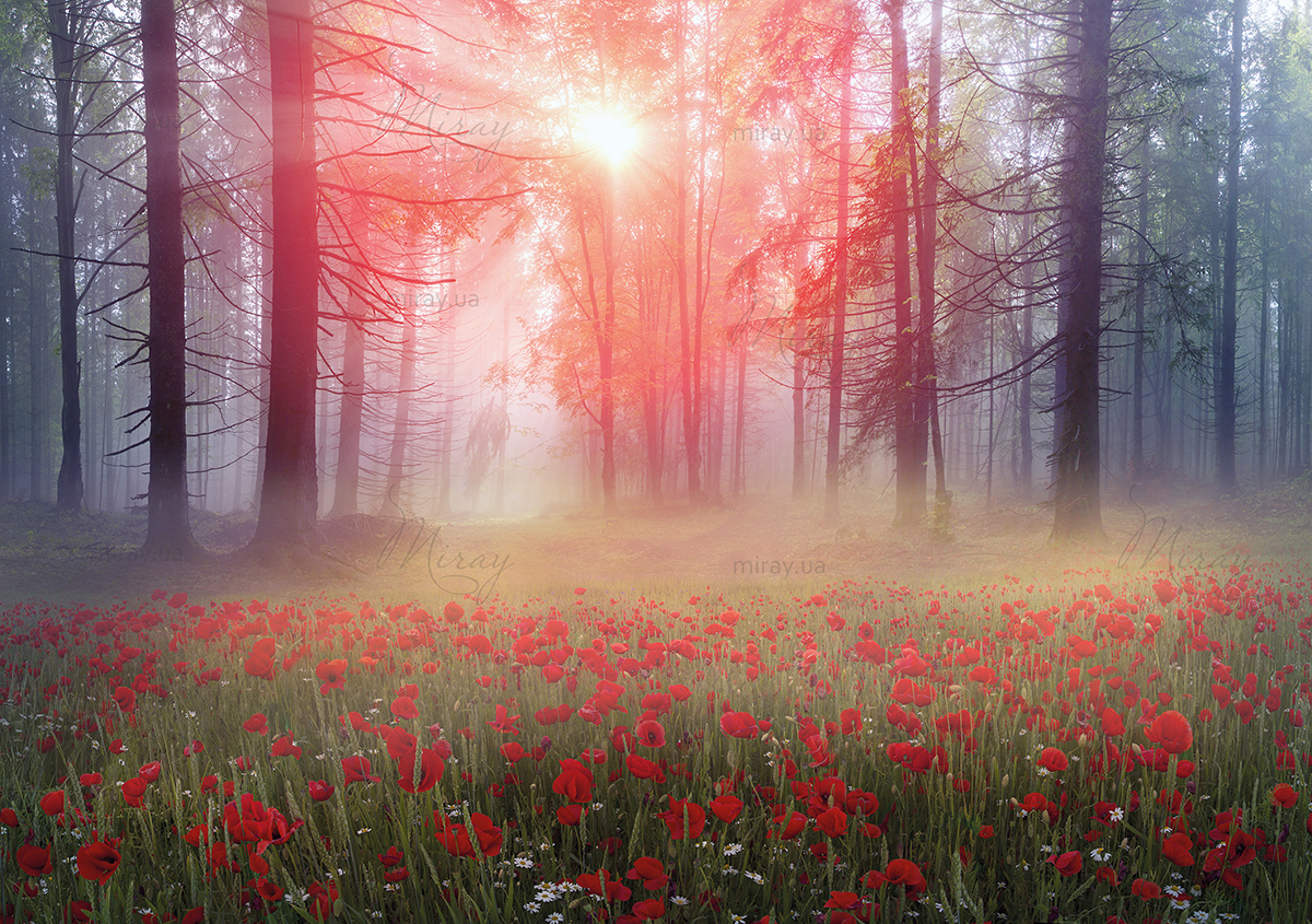Поляна маков в лесу
