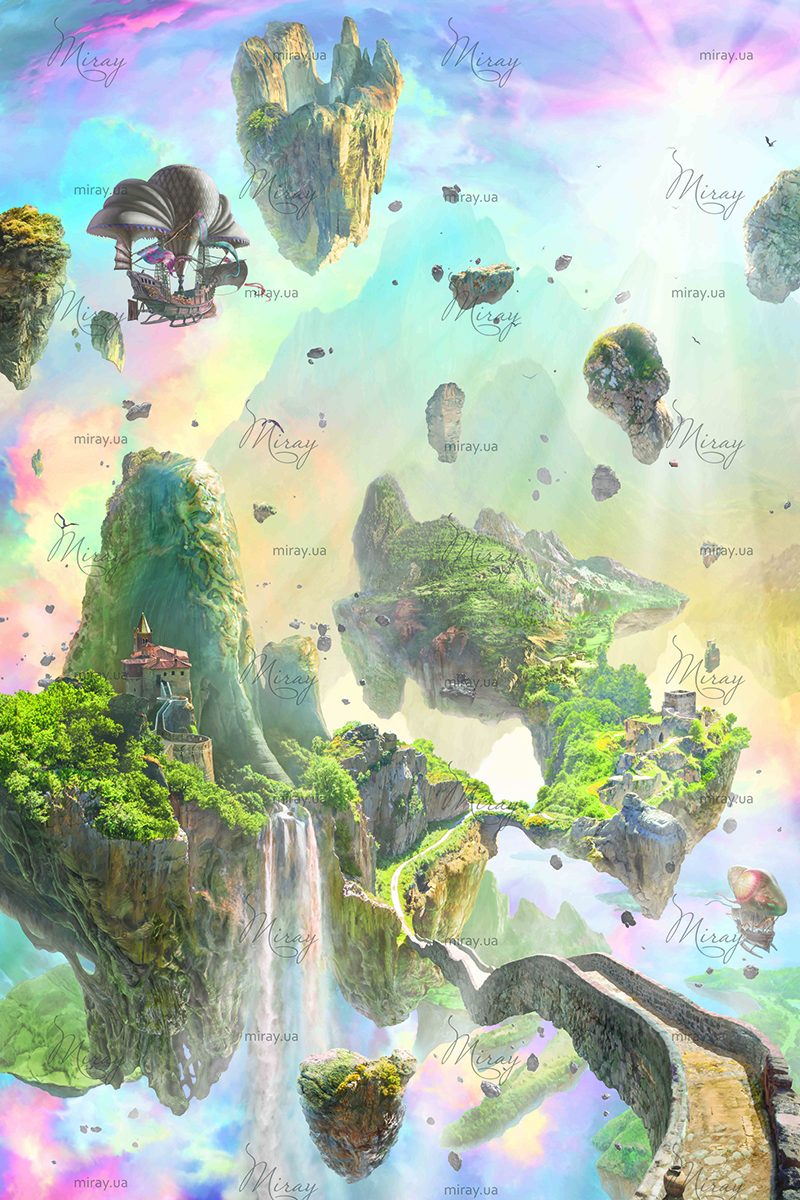 f-03-079-Фантастический пейзаж с дирижаблем и летающими островами