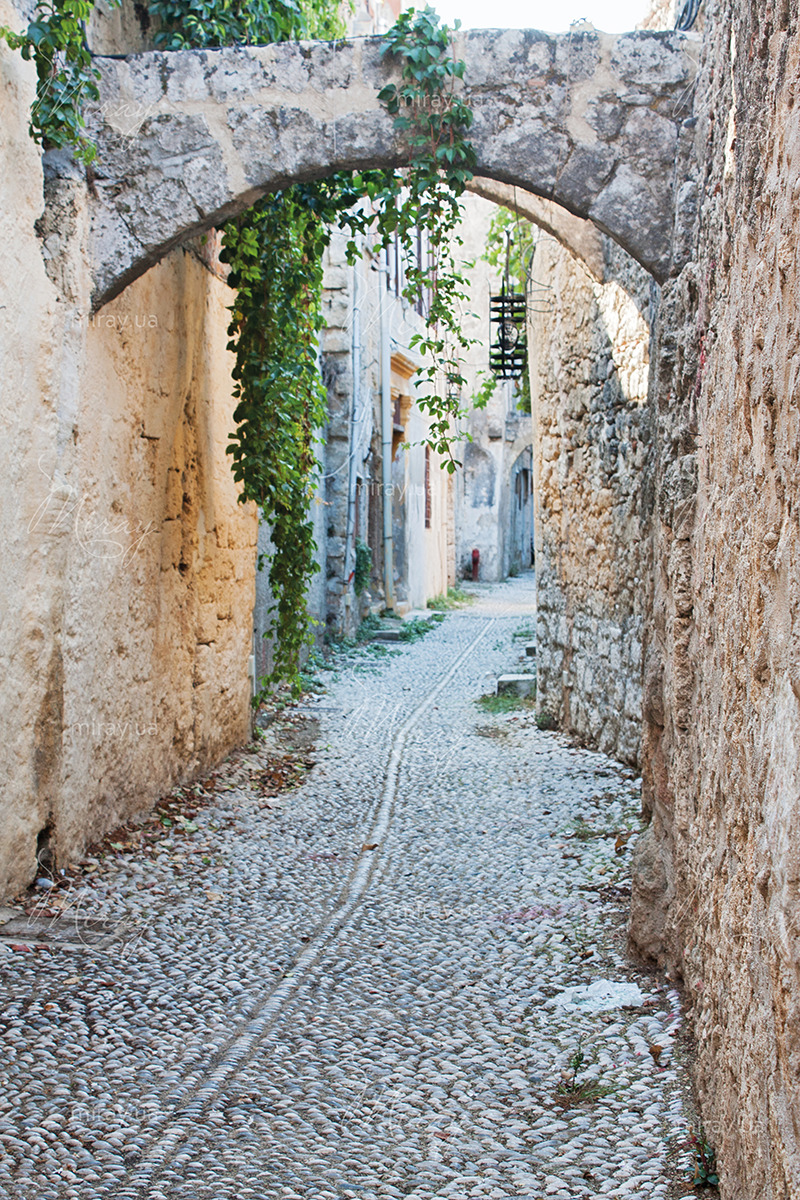 p-02-014-Аллея с арками и каменными фасадами, Греция