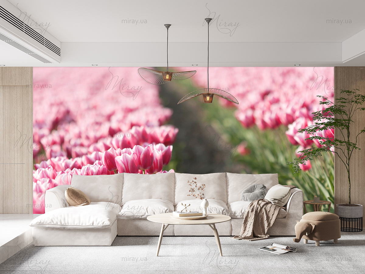 Поле розовых тюльпанов