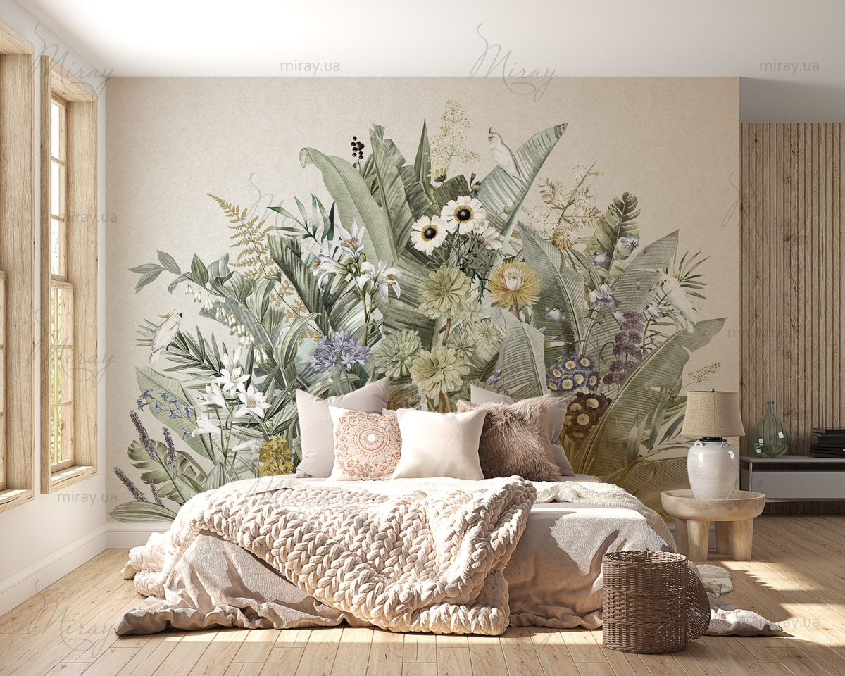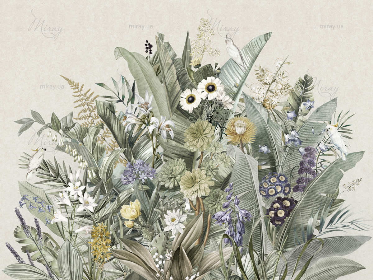 Цветы и листья с какаду