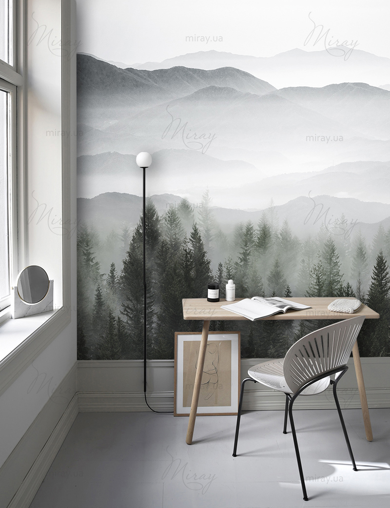 Лес и горы в тумане
