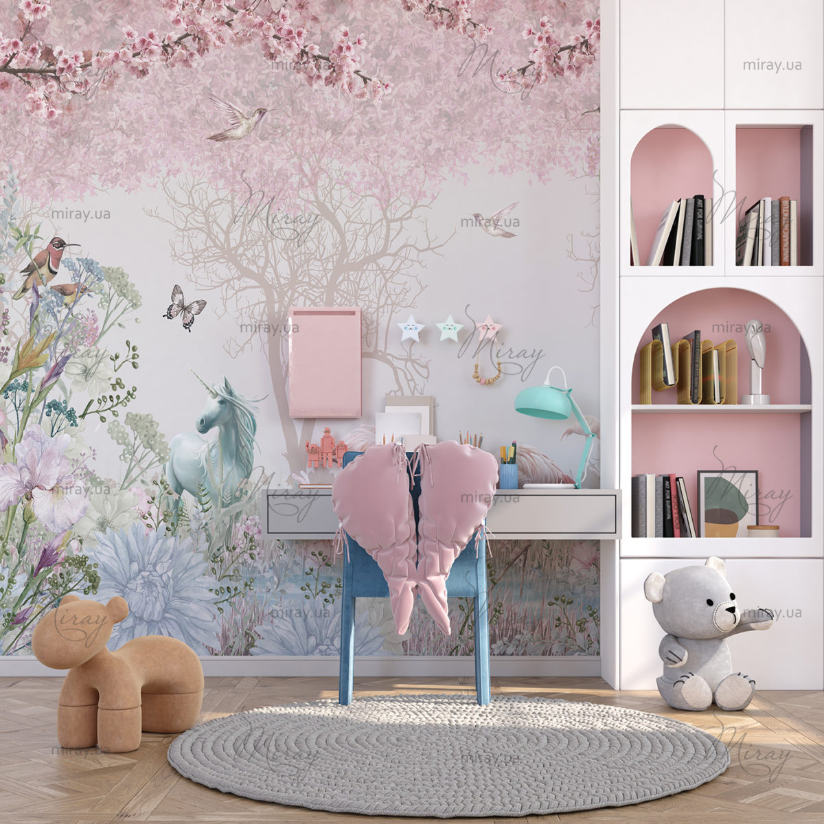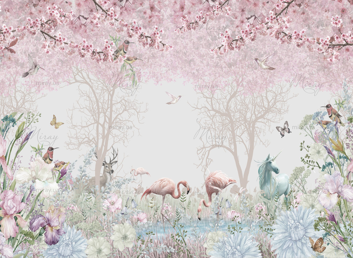 Сад с фламинго и единорогом