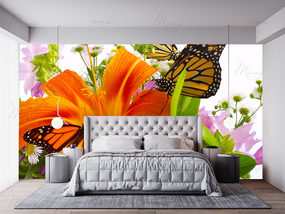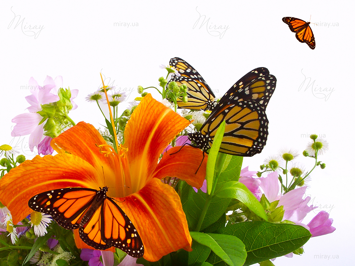 Букет лилий с бабочками