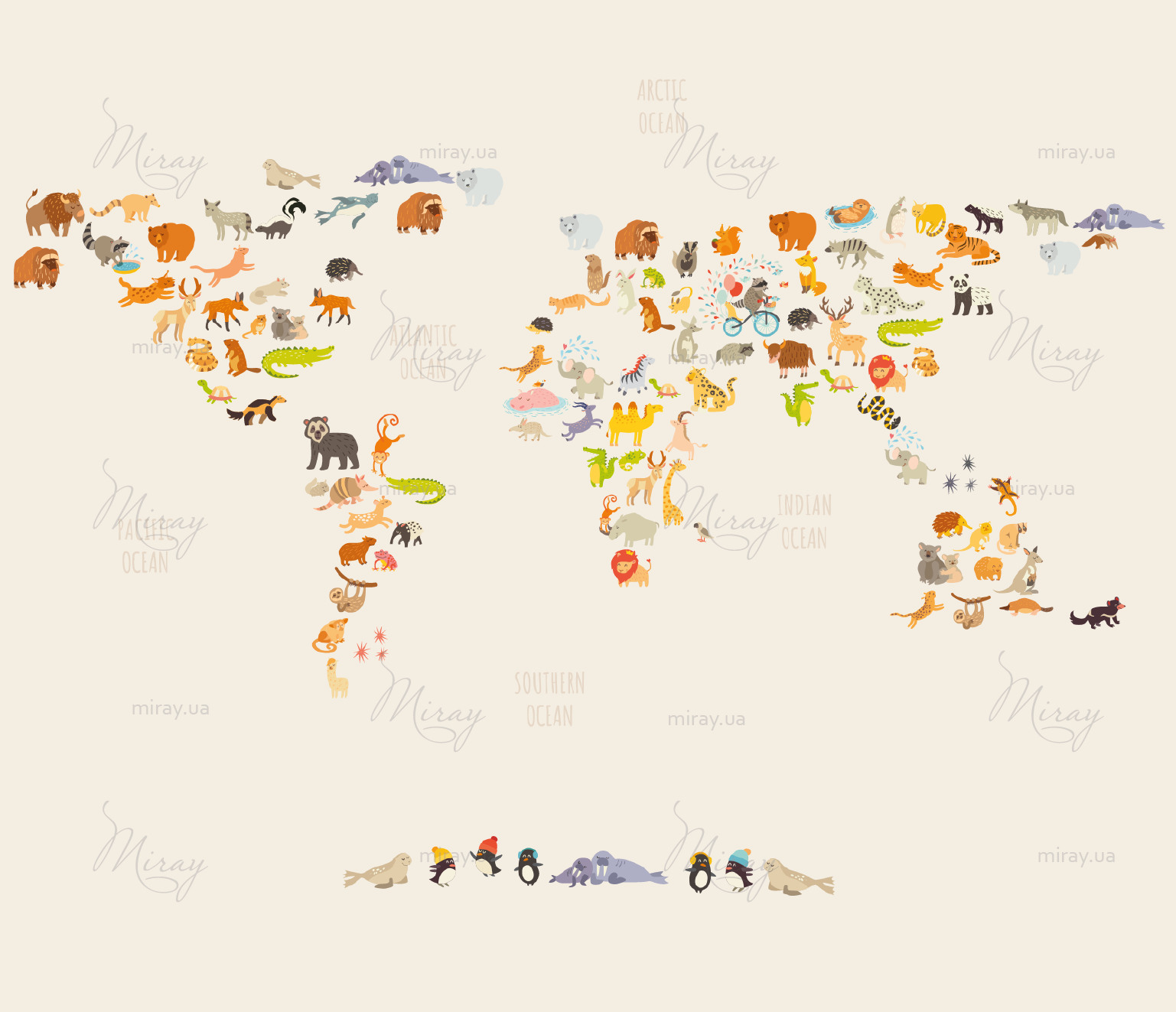 Карта детская с разными животными