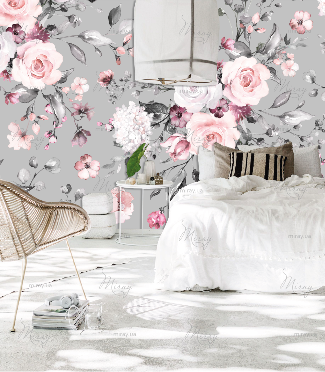 Красивые цветы на сером фоне