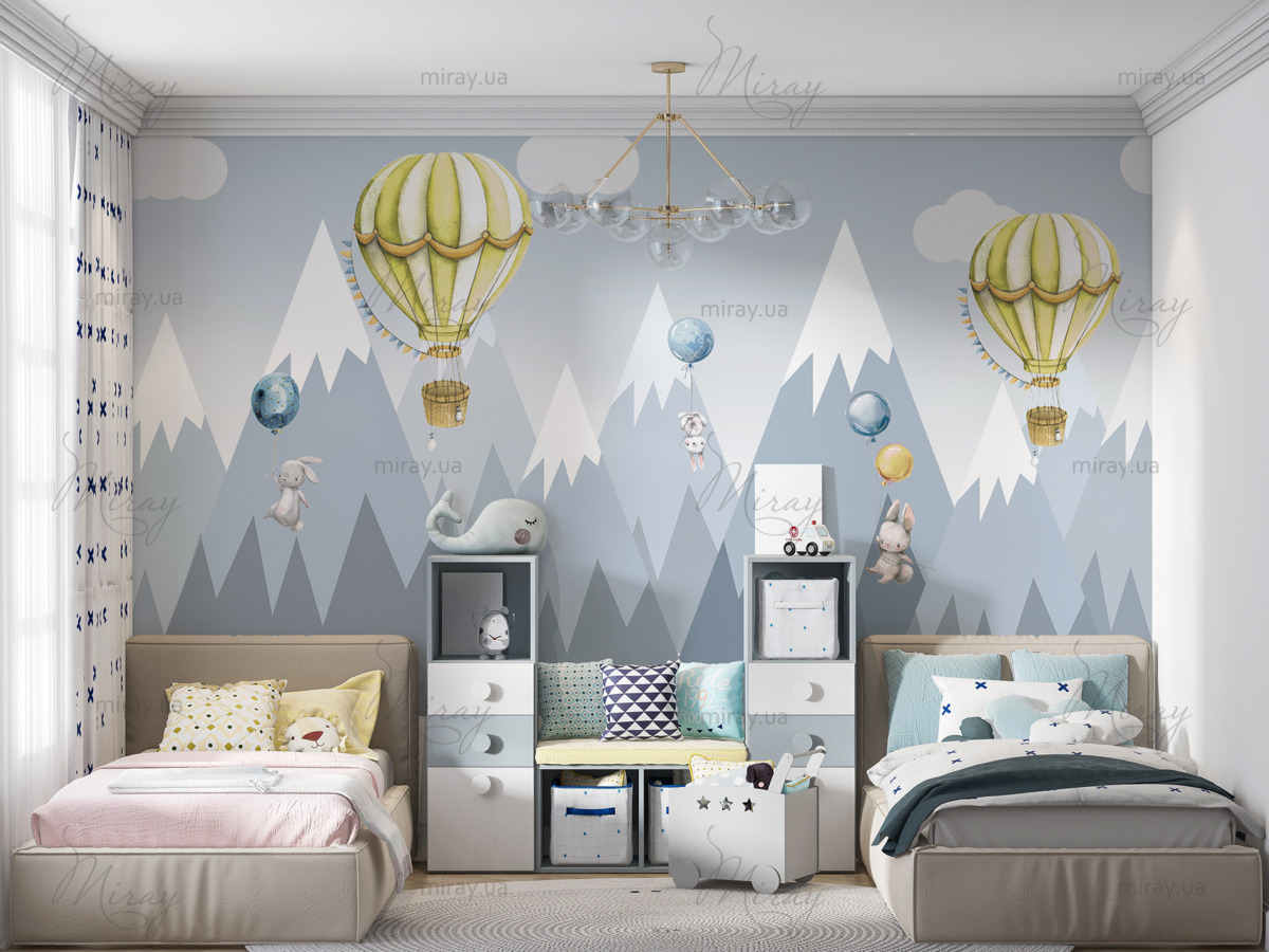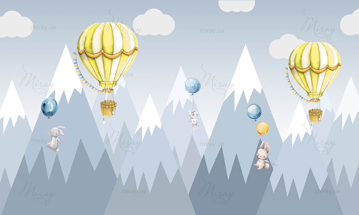Горы с желтыми шарами и зайчиками