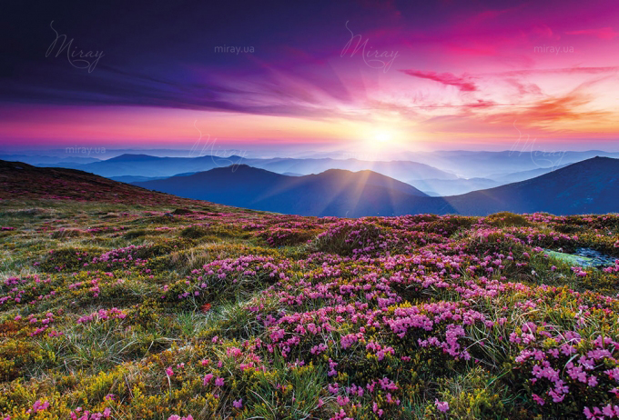 Закат над цветочными холмами
