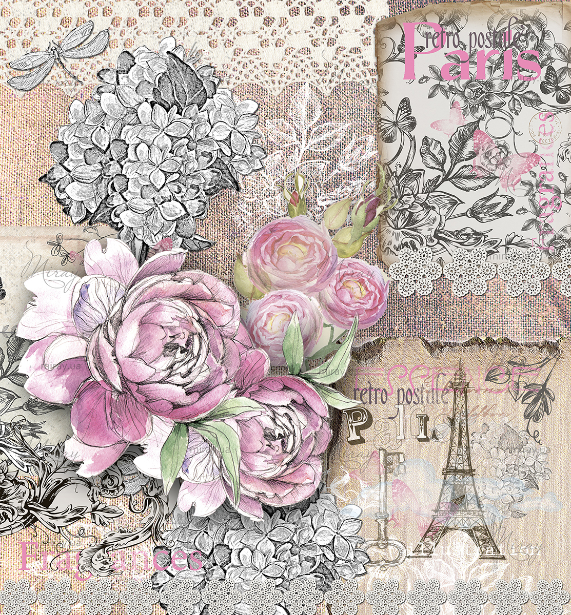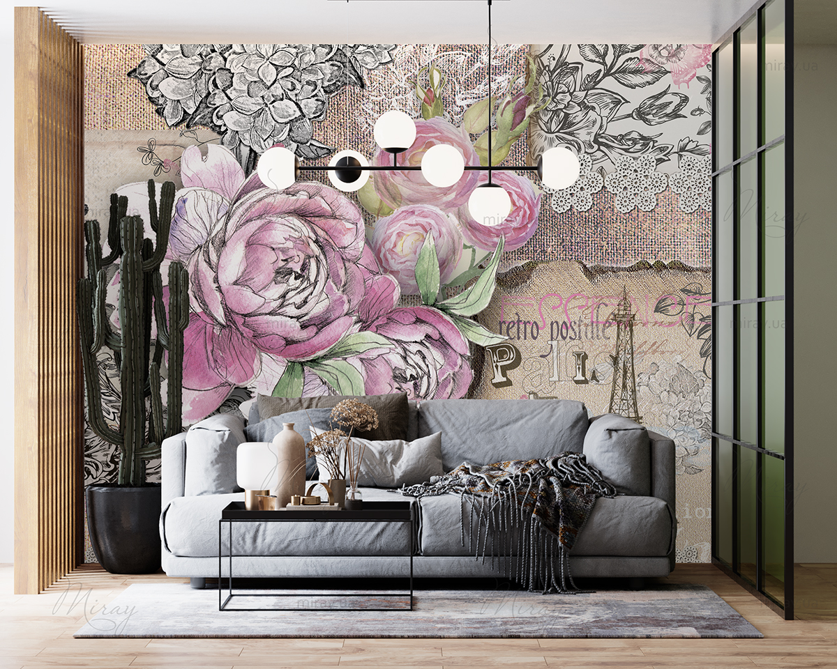 Винтажный рисунок с розовыми цветами 2